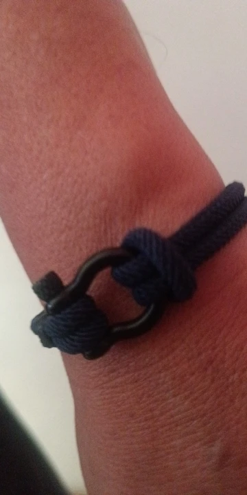 Constructed from hard-wearing and fade-resistant nylon marine para cord, adorned with a black Titanium Steel shackle closure, the double strand is bound around the black shackle and secured with black nylon thread for extra strength.